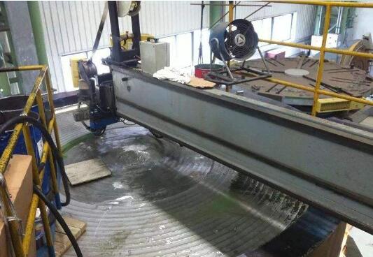 金屬焊絲成圈地放置在附設的焊絲盤中,通過埋弧焊機的送絲機構,以一定的速度連續、均勻地送人堆焊電弧,在堆焊電弧的高溫作用下均勻地熔化。金屬熔滴通過堆焊電弧與被堆焊工件的熔融金屬相混合,形成堆焊熔池。渣殼和未熔化焊劑覆蓋下的熔敷金屬冷卻后成為堆焊合金層。未熔化的焊劑被吸人回收箱,以便回收再用。應控制埋弧堆焊機頭行走速度,以保證堆焊焊道形成螺旋形軌跡。